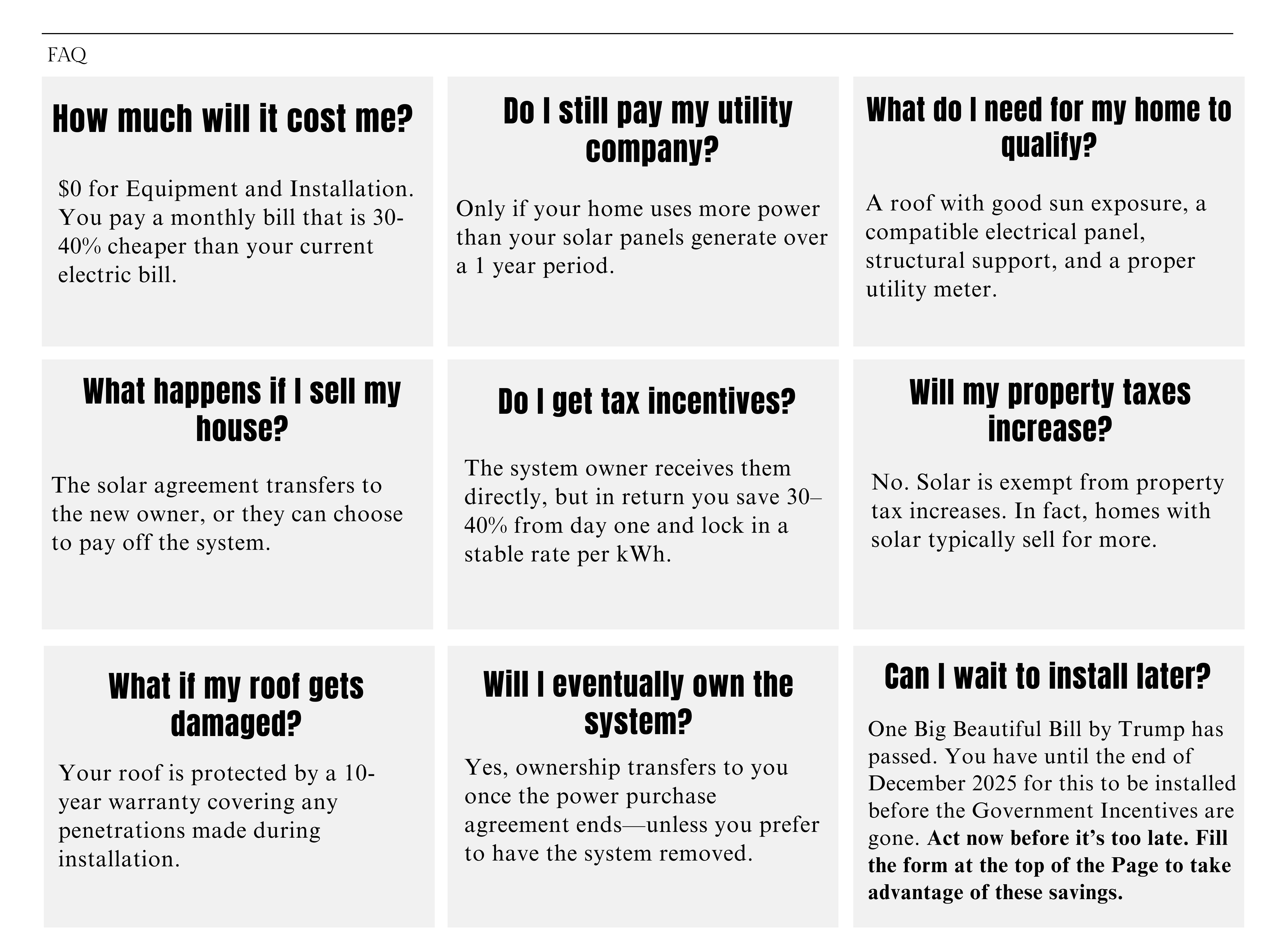 With our Power Purchase Agreement (PPA), you can lock in predictable energy costs with no upfront investment. Once you’re ready, we’ll schedule your installation and you can start saving.